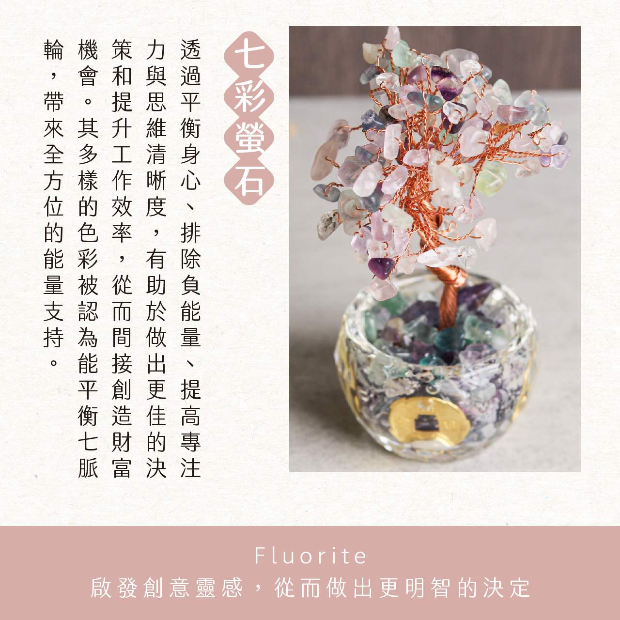 七彩螢石-招財聚富琉璃水晶發財樹|過爐加持|招財樹|正能量|財運【聚寶閣】