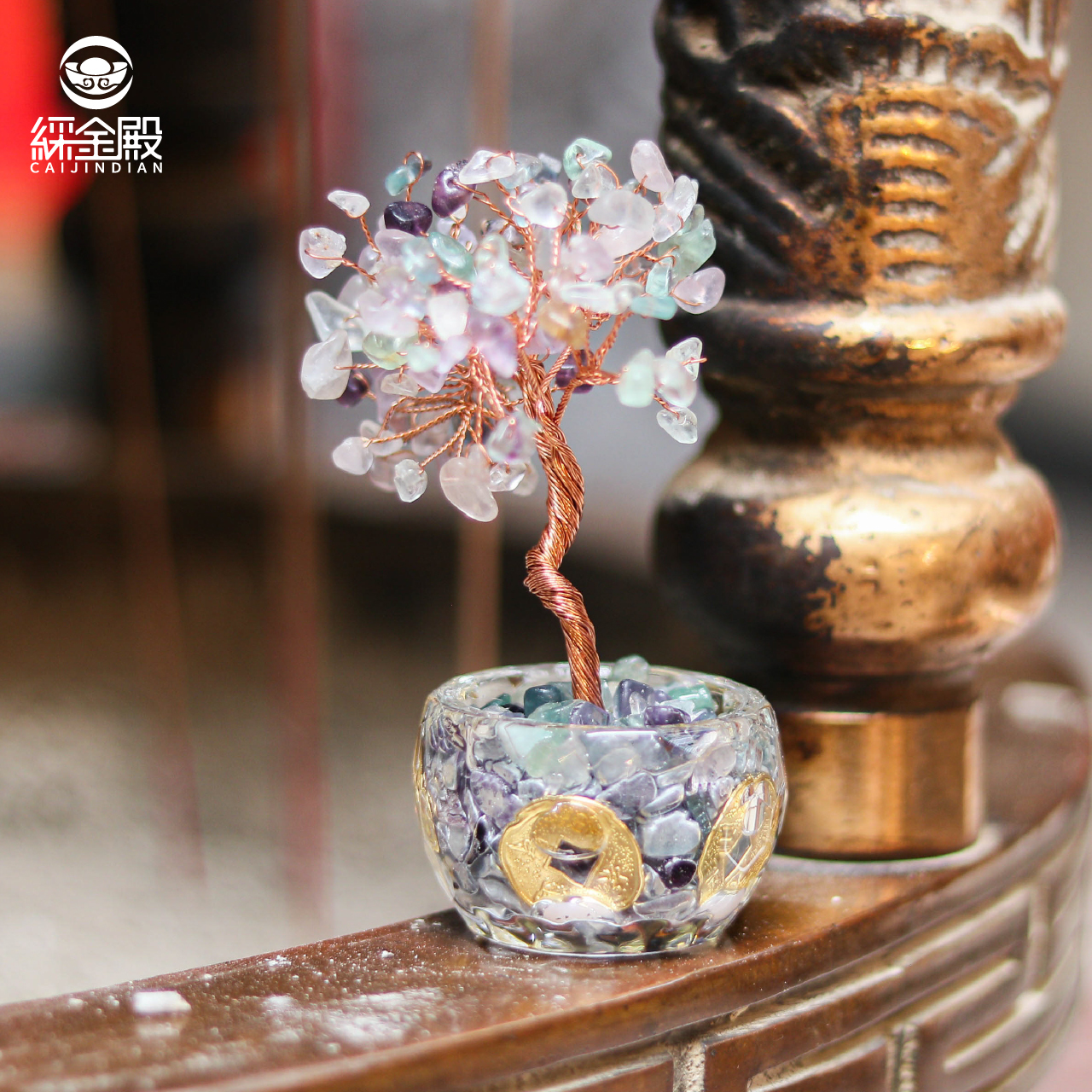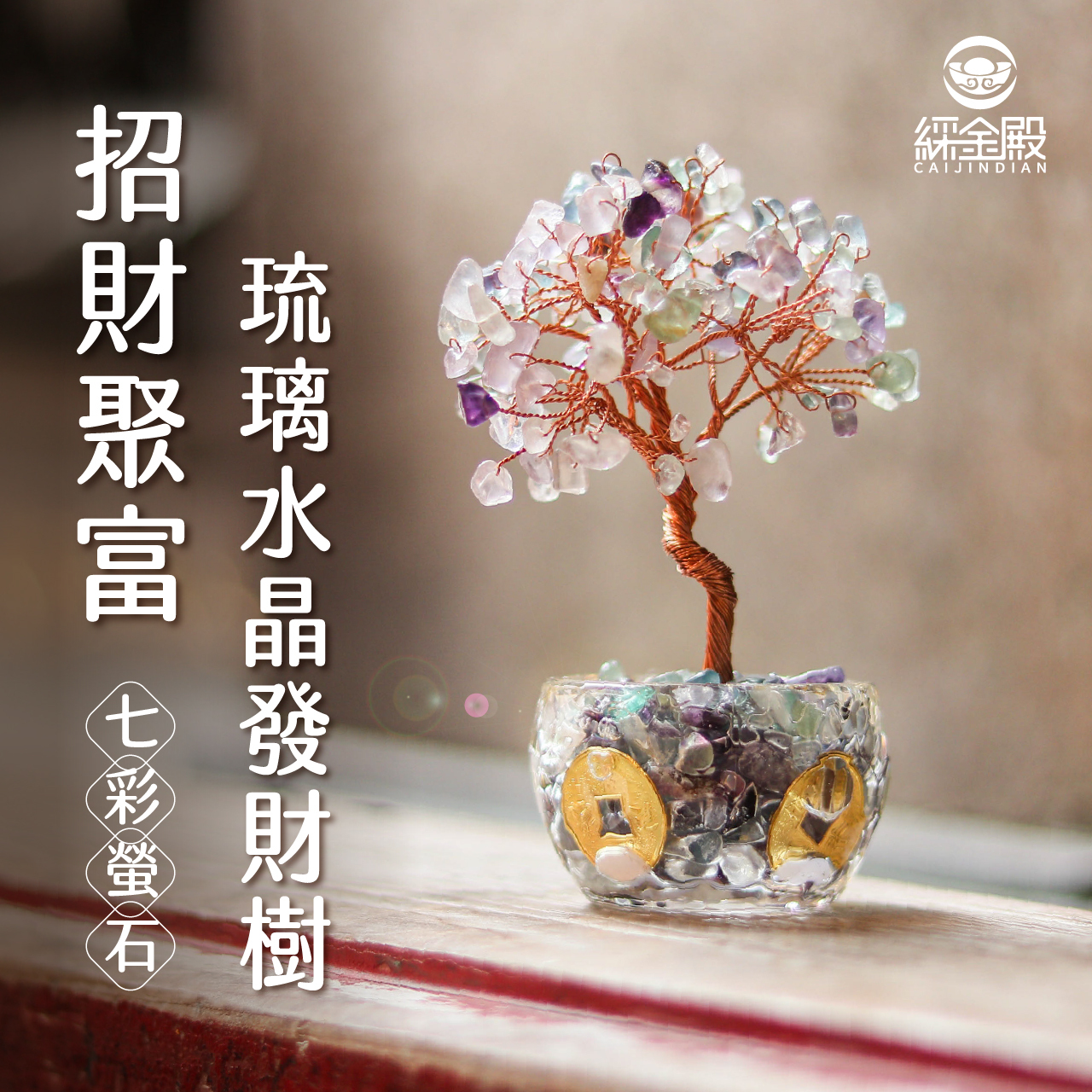 七彩螢石-招財聚富琉璃水晶發財樹|過爐加持|招財樹|正能量|財運【綵金殿】