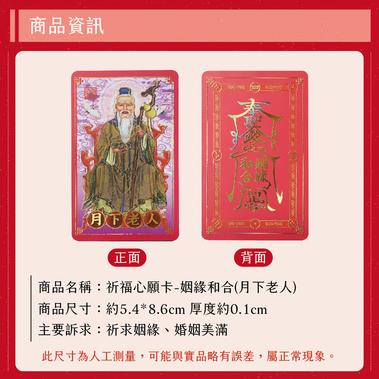 祈福心願卡-姻緣和合(月下老人)|祈求姻緣|婚姻美滿|護身卡|守護庇佑|過爐加持【聚寶閣】