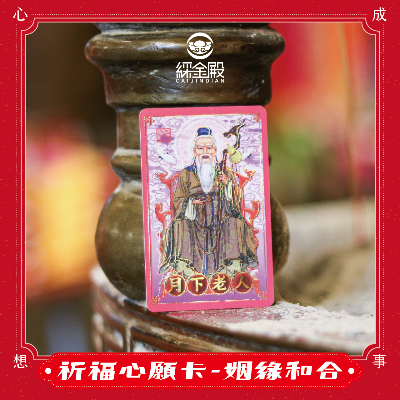 祈福心願卡-姻緣和合(月下老人)|祈求姻緣|婚姻美滿|護身卡|守護庇佑|過爐加持【綵金殿】