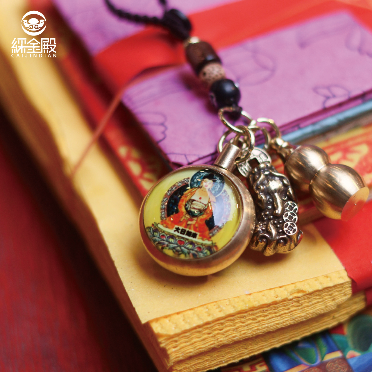 生肖鼠-夜光琉璃十二生肖本命佛黃銅吊飾|千手千眼觀世音菩薩|掛件|護身|生肖|轉運【綵金殿】