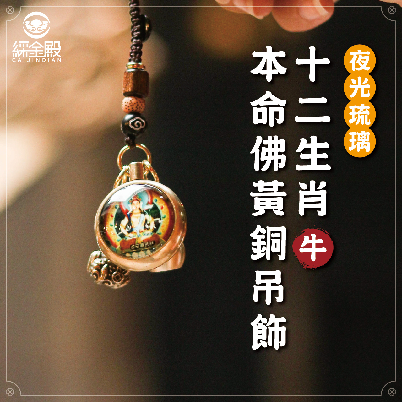 生肖牛-夜光琉璃十二生肖本命佛黃銅吊飾|虛空藏菩薩|掛件|護身|生肖|轉運【綵金殿】