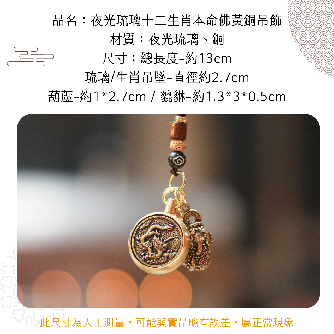 生肖龍-夜光琉璃十二生肖本命佛黃銅吊飾|普賢菩薩|掛件|護身|生肖|轉運【聚寶閣】