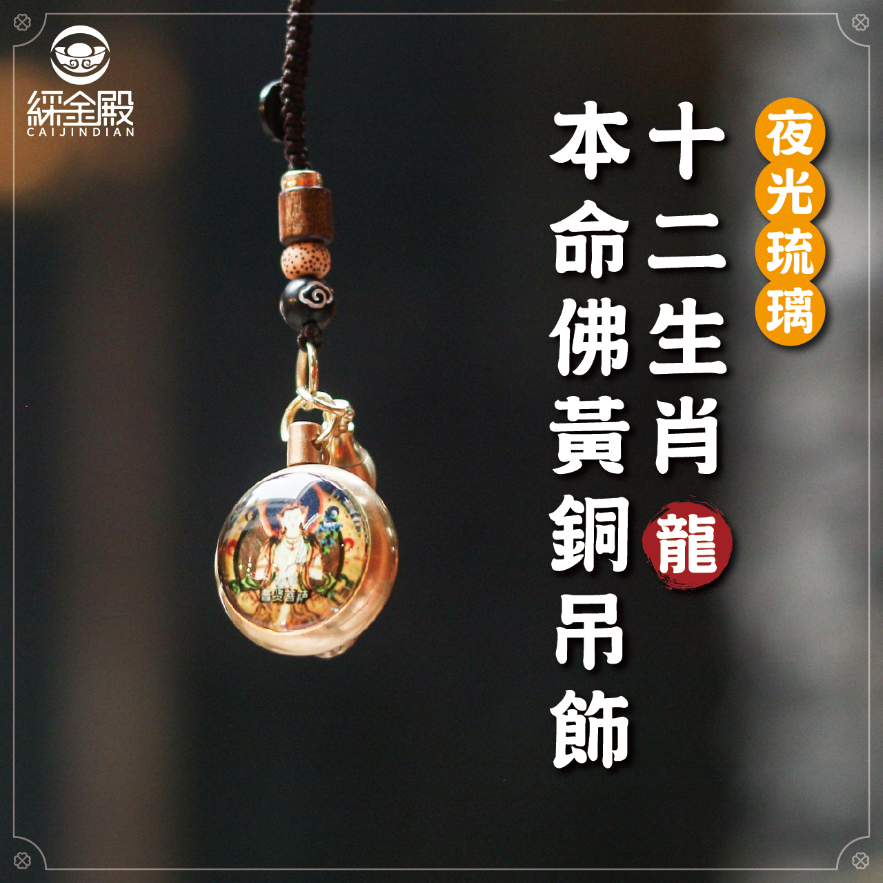 生肖龍-夜光琉璃十二生肖本命佛黃銅吊飾|普賢菩薩|掛件|護身|生肖|轉運【綵金殿】