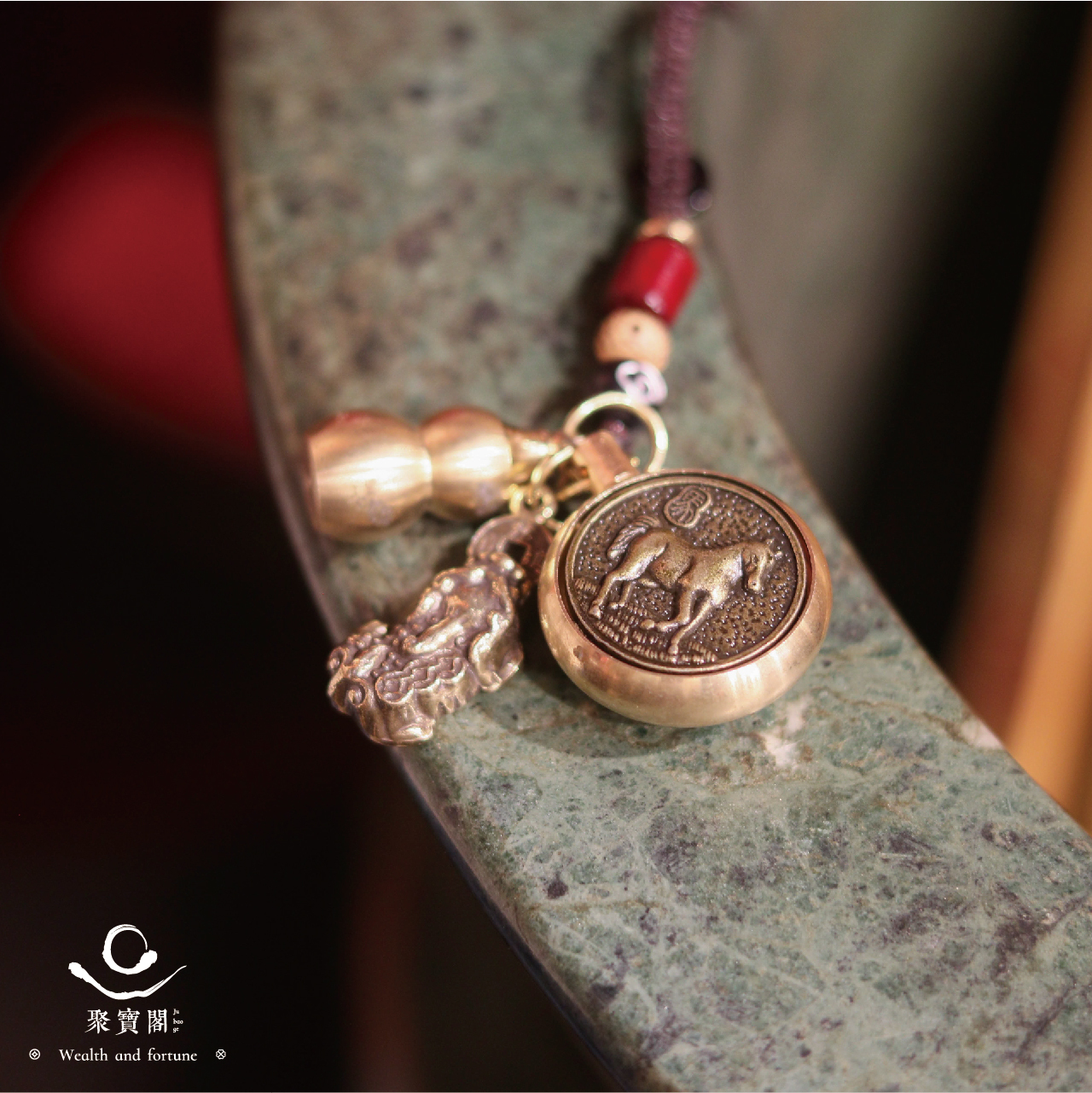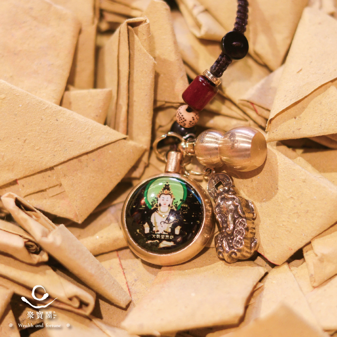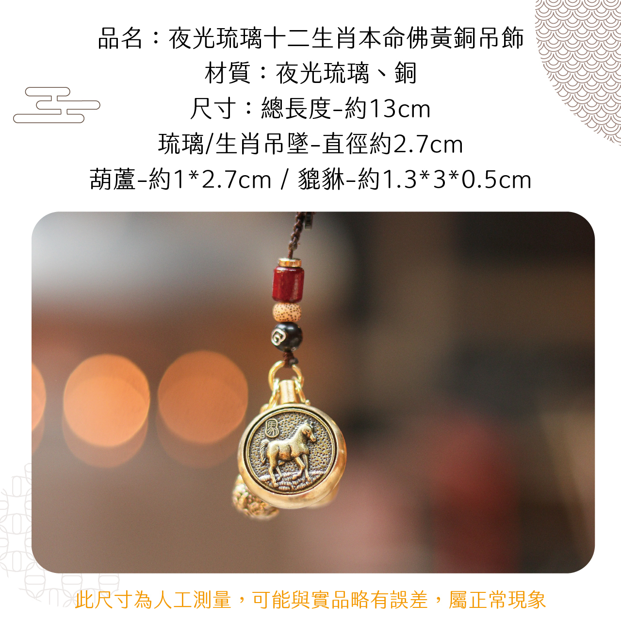 生肖馬-夜光琉璃十二生肖本命佛黃銅吊飾|大勢至菩薩|掛件|護身|生肖|轉運【聚寶閣】