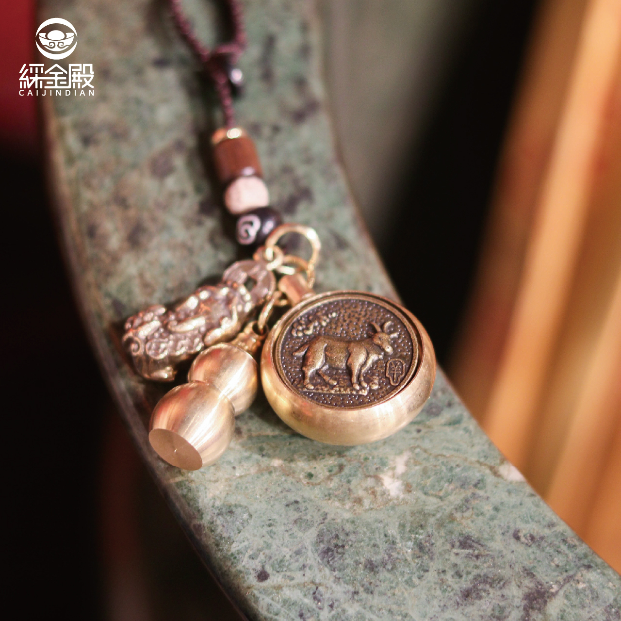 生肖羊-夜光琉璃十二生肖本命佛黃銅吊飾|大日如來|掛件|護身|生肖|轉運【綵金殿】