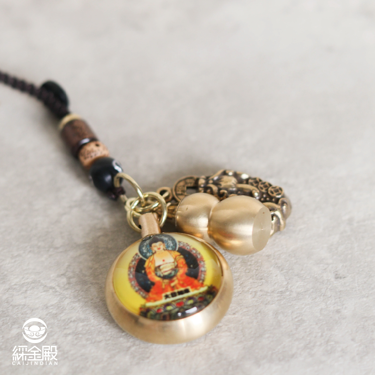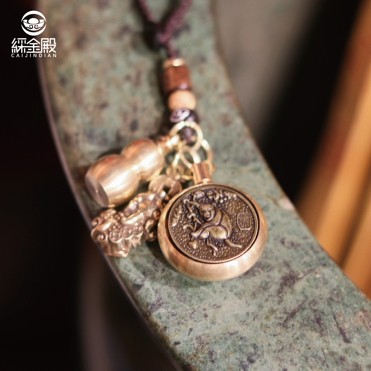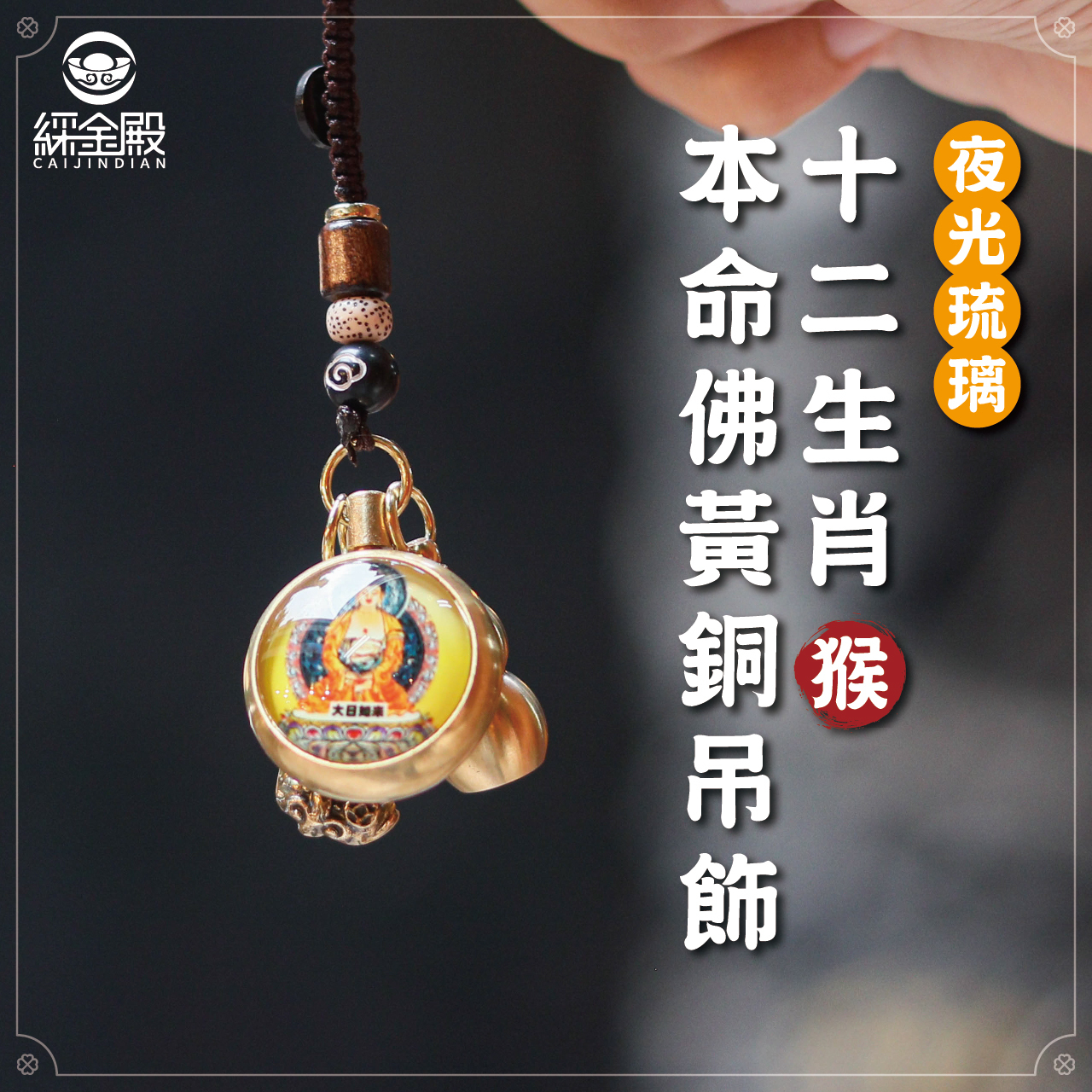 生肖猴-夜光琉璃十二生肖本命佛黃銅吊飾|大日如來|掛件|護身|生肖|轉運【綵金殿】