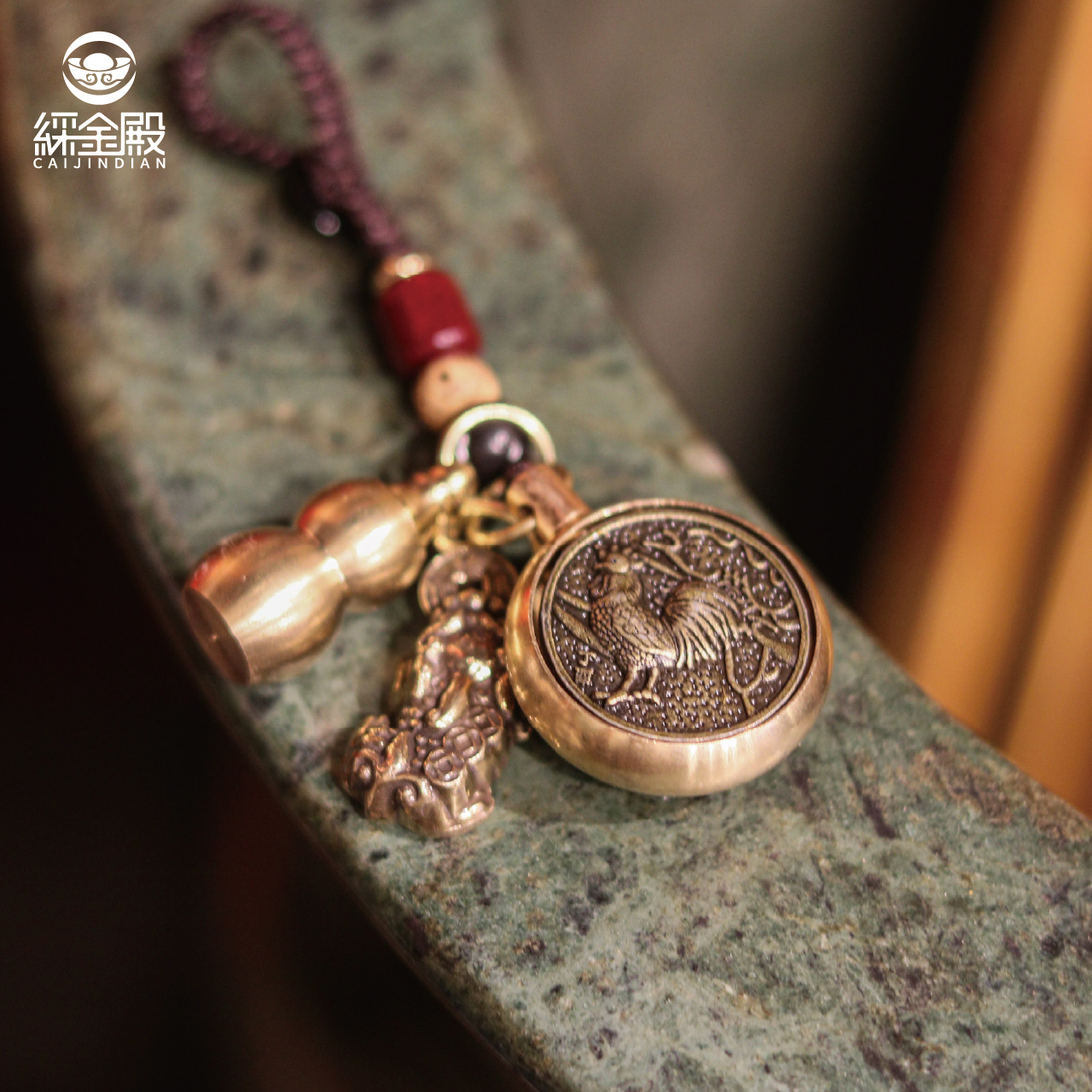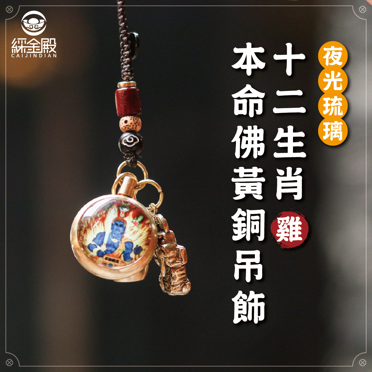 生肖雞-夜光琉璃十二生肖本命佛黃銅吊飾|不動明王|掛件|護身|生肖|轉運【綵金殿】