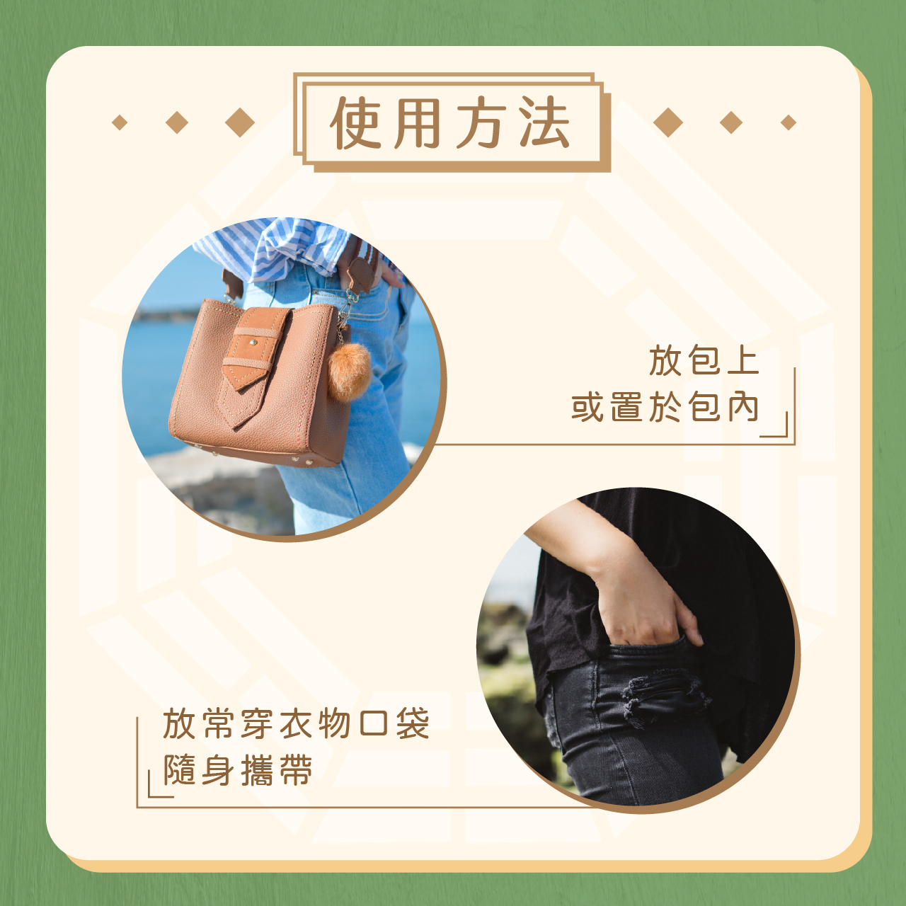 內附防小人符令,並搭配過爐祈福的皮製御守。