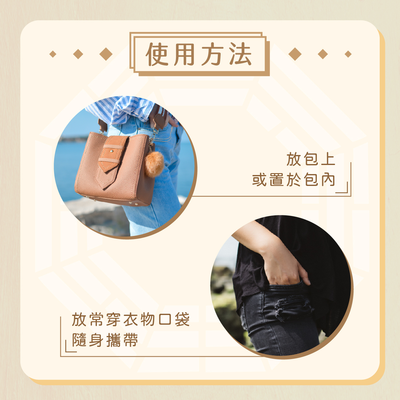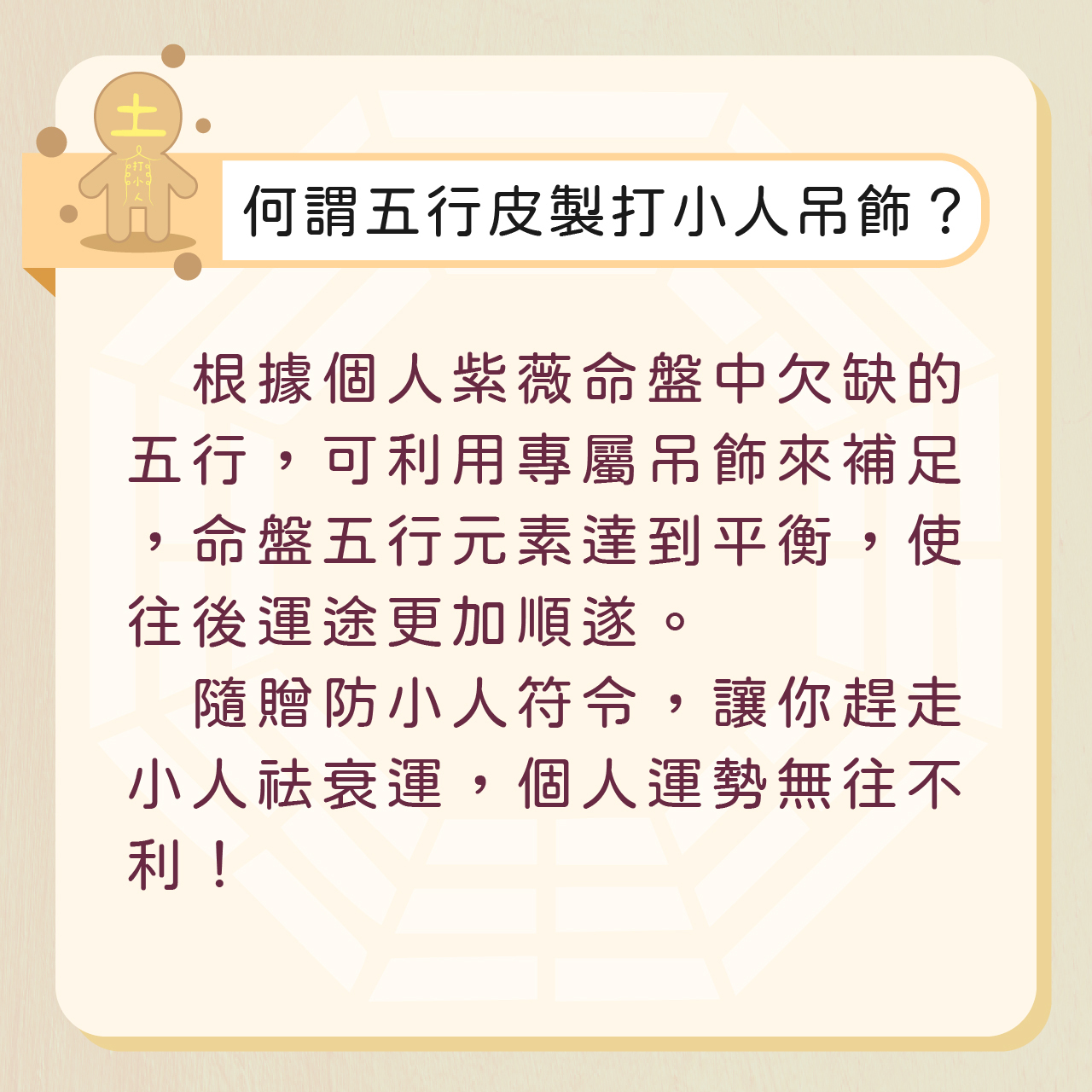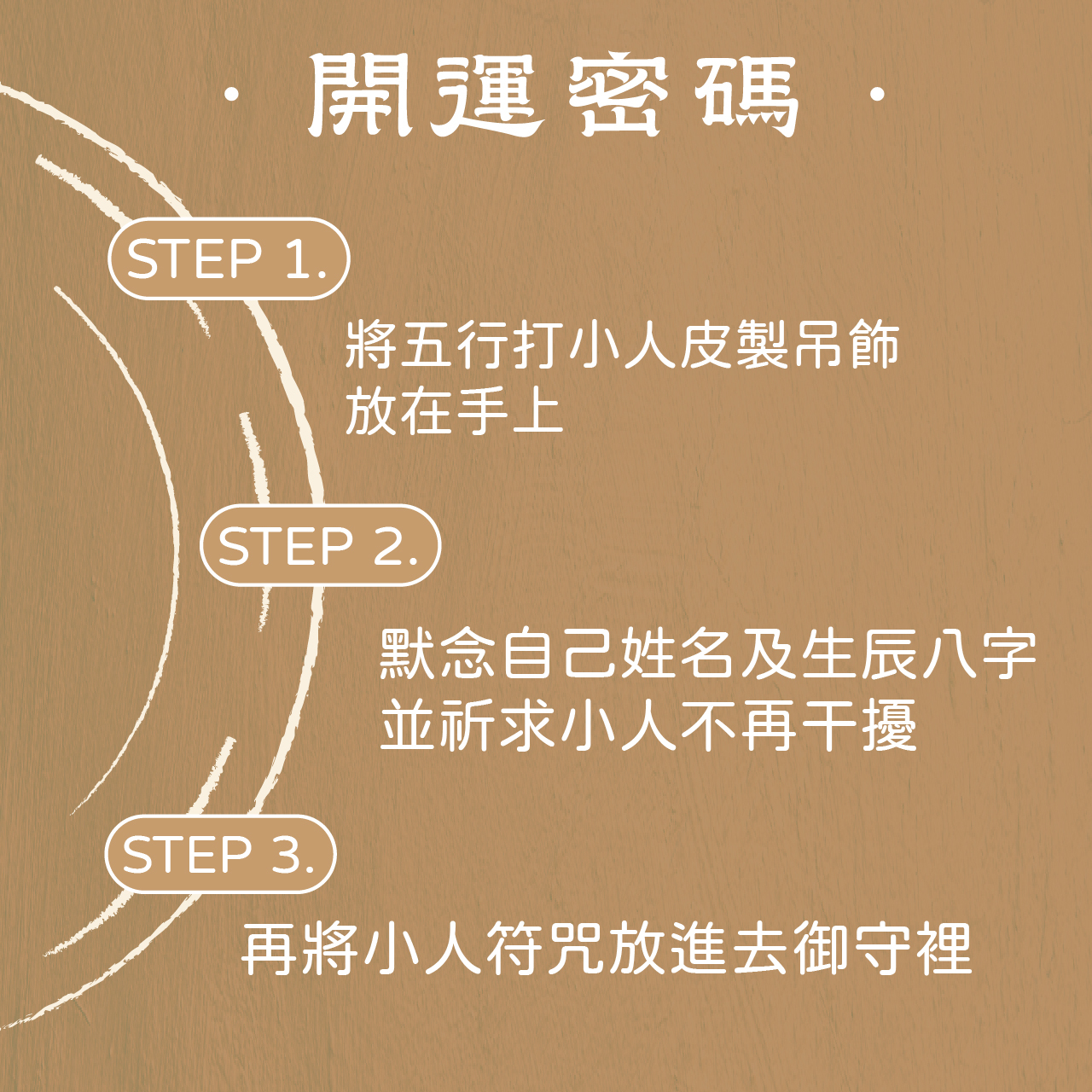 內附防小人符令,並搭配過爐祈福的皮製御守。