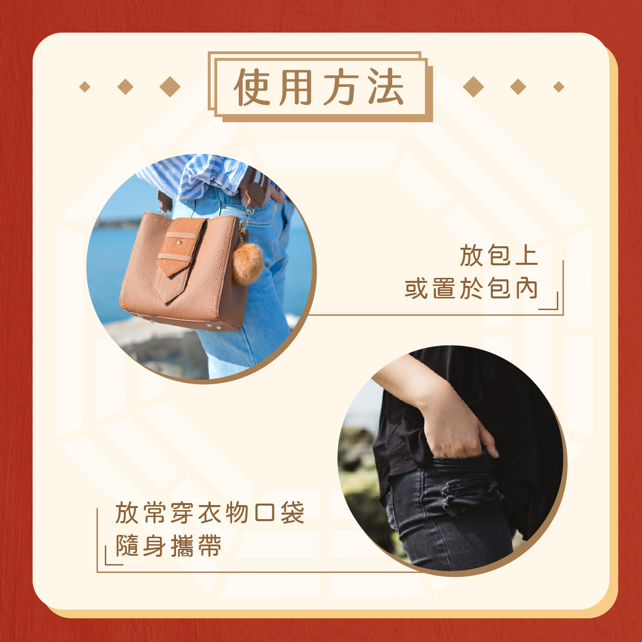 內附防小人符令,並搭配過爐祈福的皮製御守。