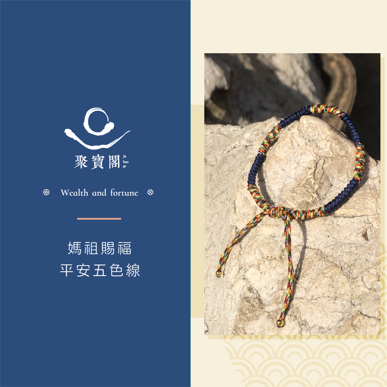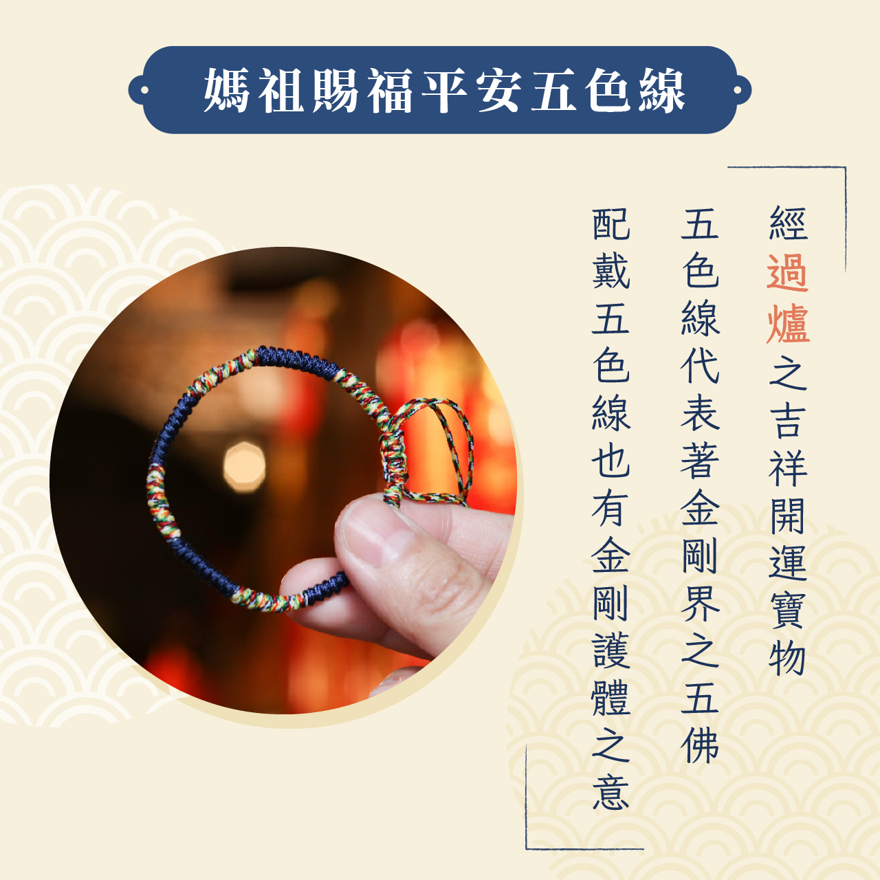 媽祖賜福平安五色線-藍色|《含過爐》|保平安、事業亨通【聚寶閣】