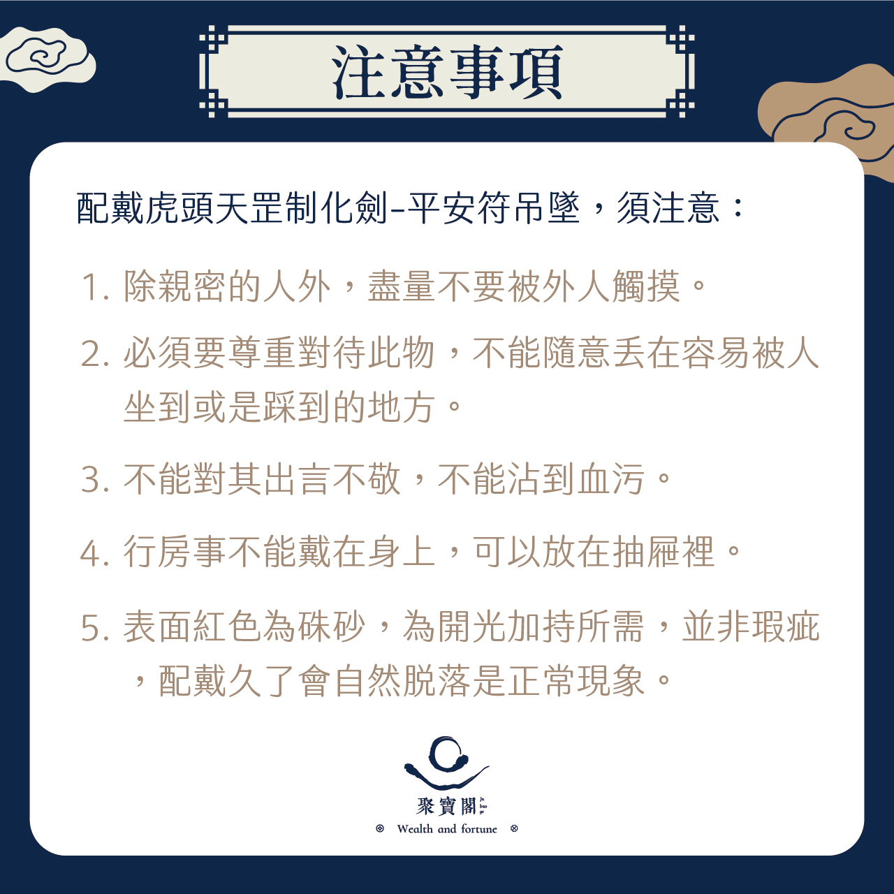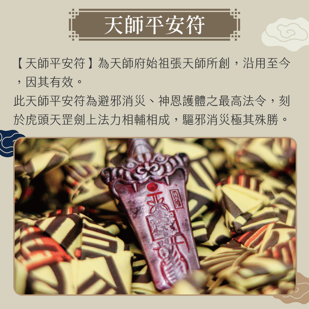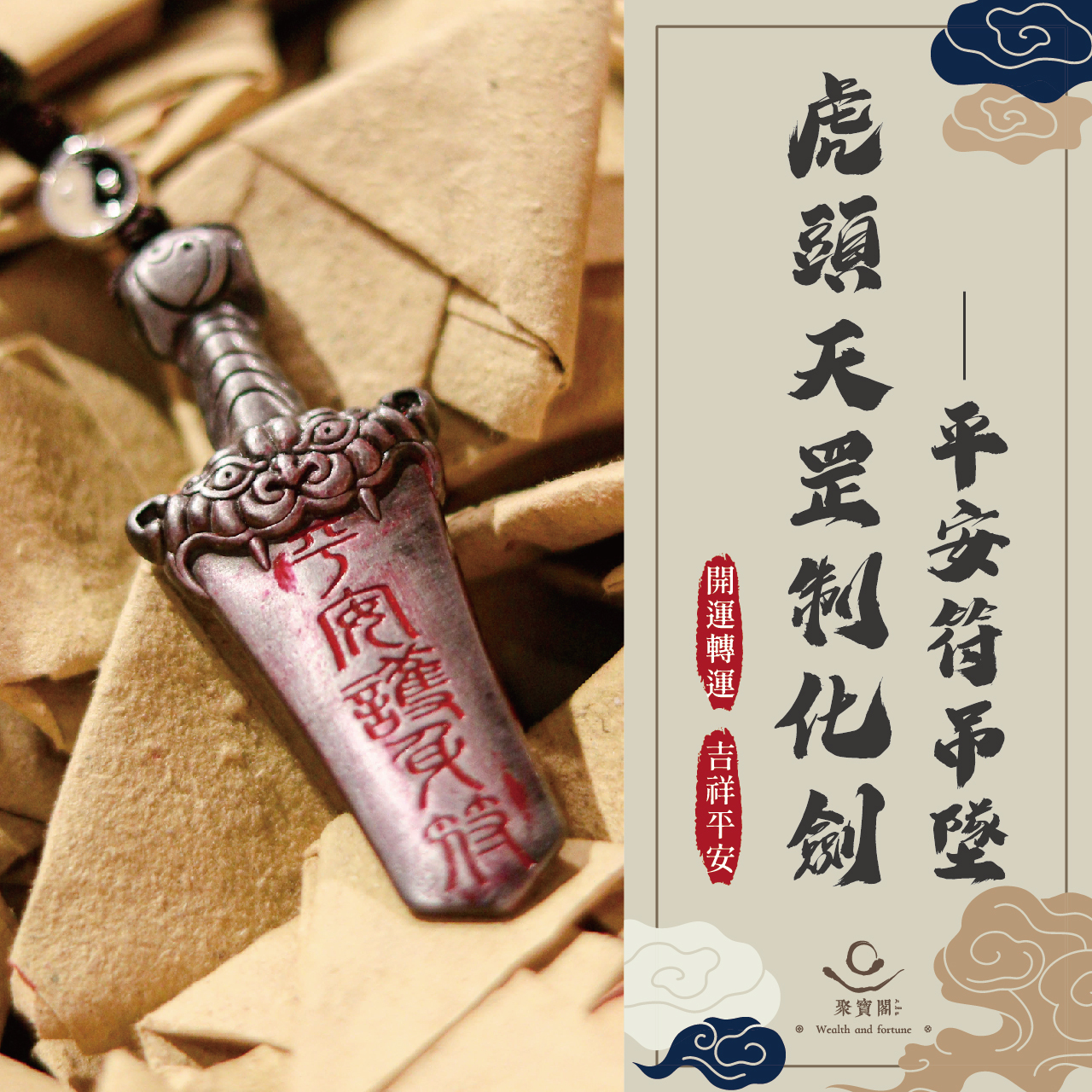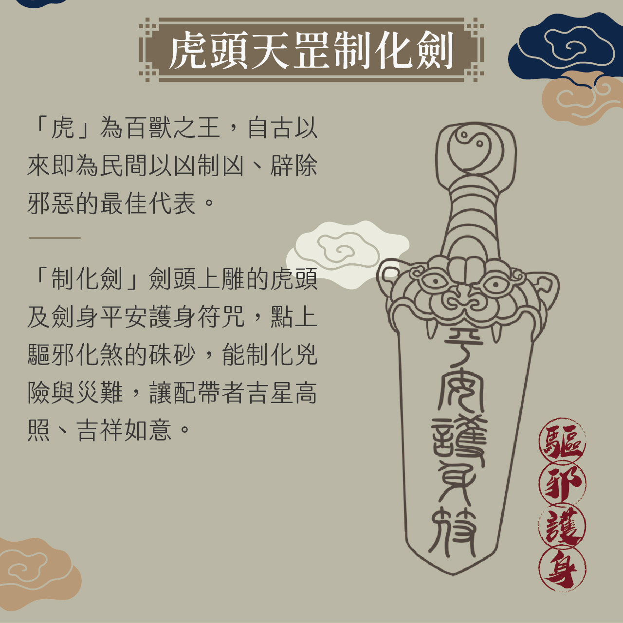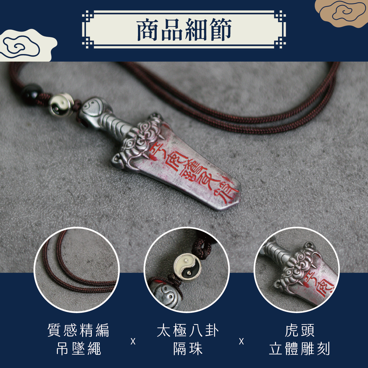 劍頭上雕的虎頭及劍身刻有天師平安符咒