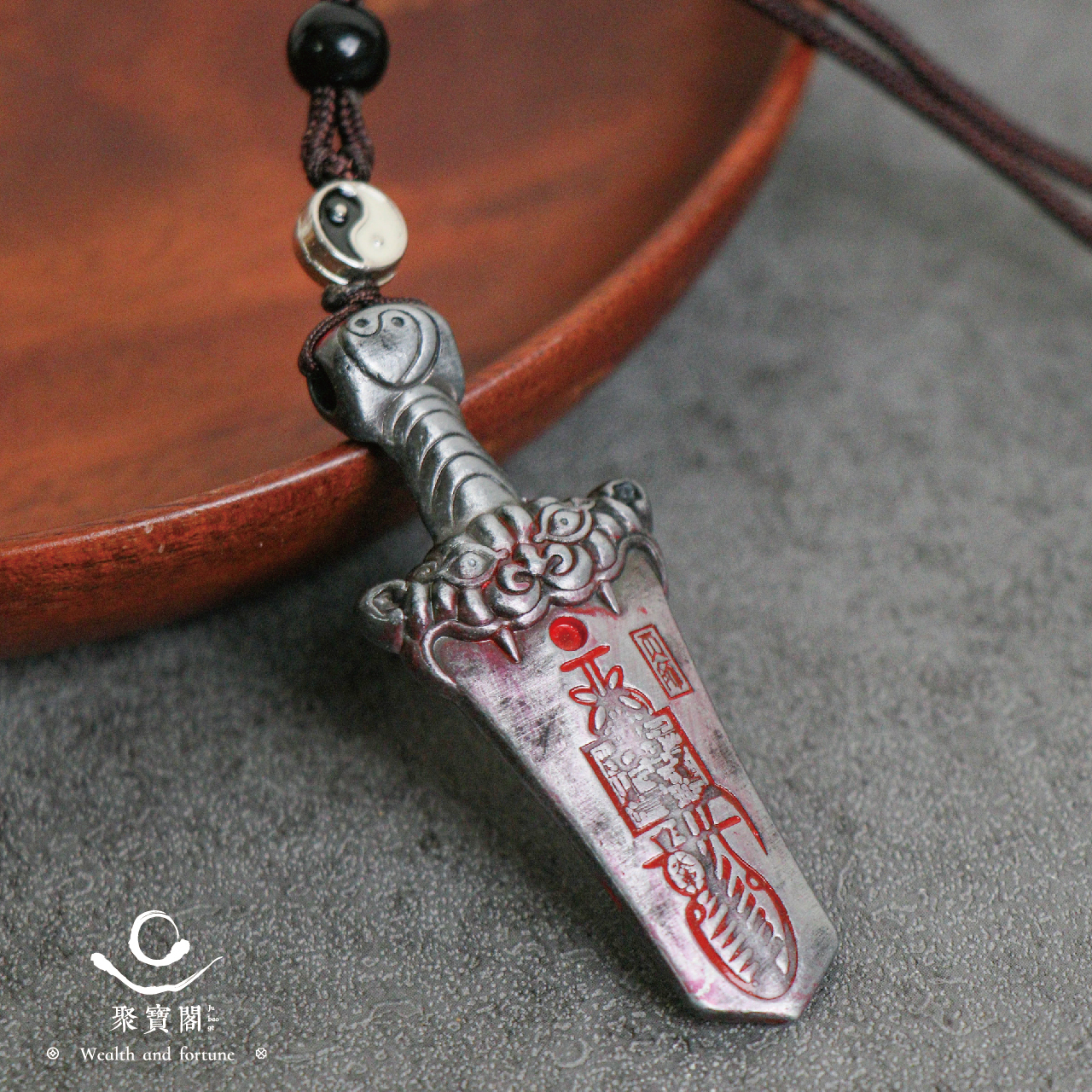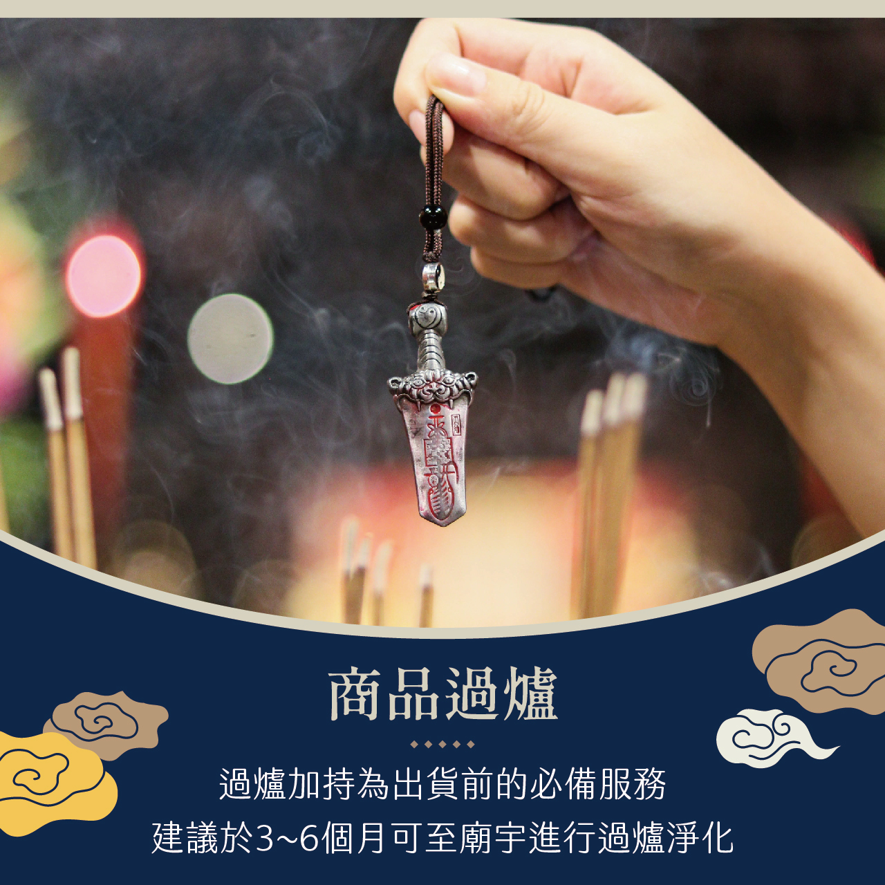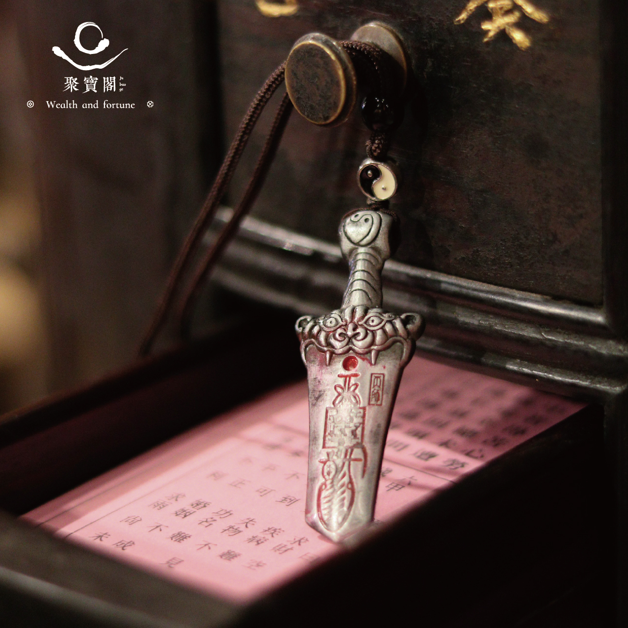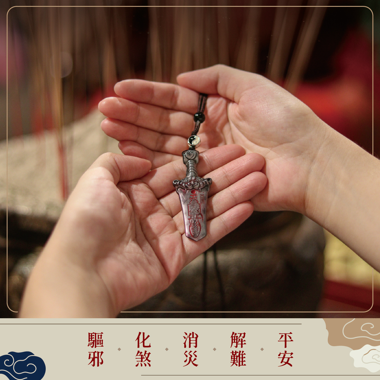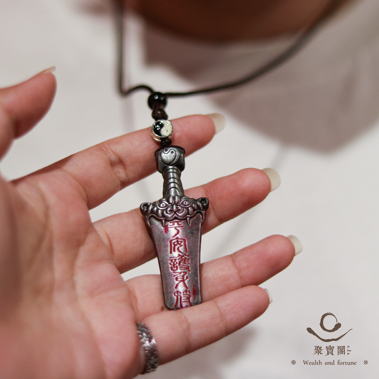 劍頭上雕的虎頭及劍身刻有天師平安符咒