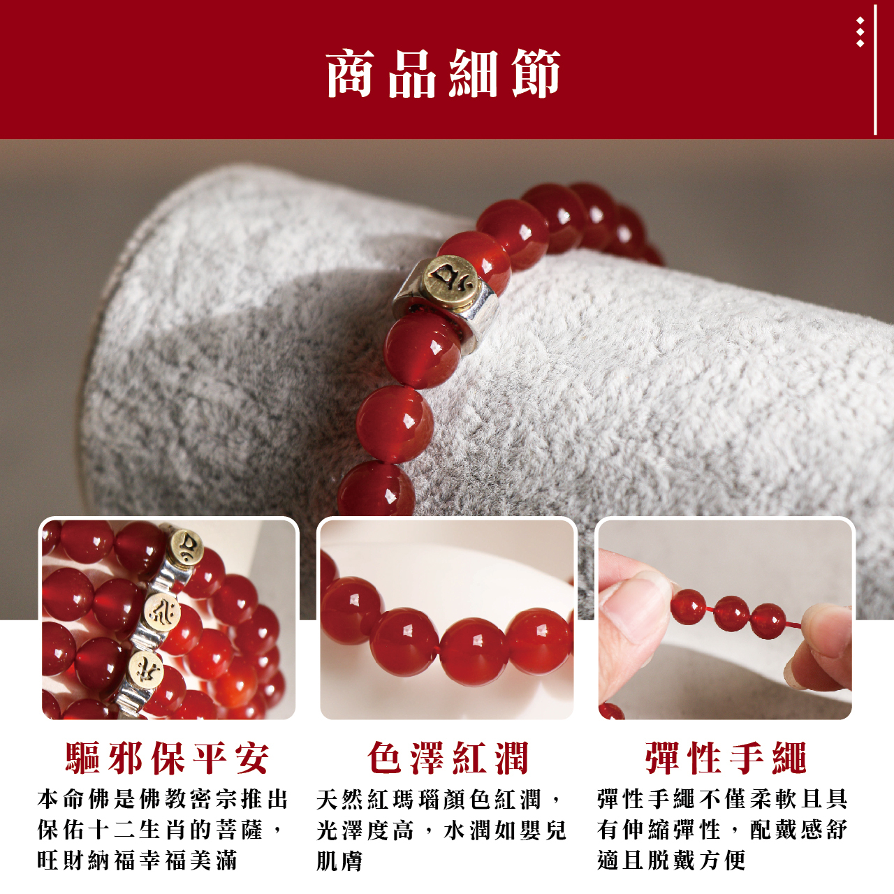 天然紅瑪瑙本命佛手珠-牛/虎|守護神|虛空藏菩薩|手鍊|飾品|智慧【聚寶閣】