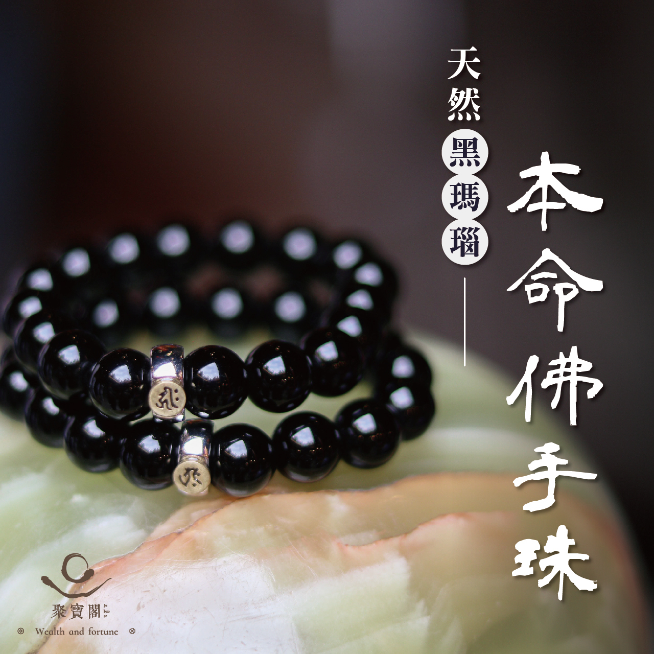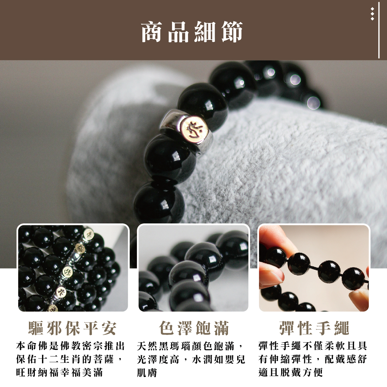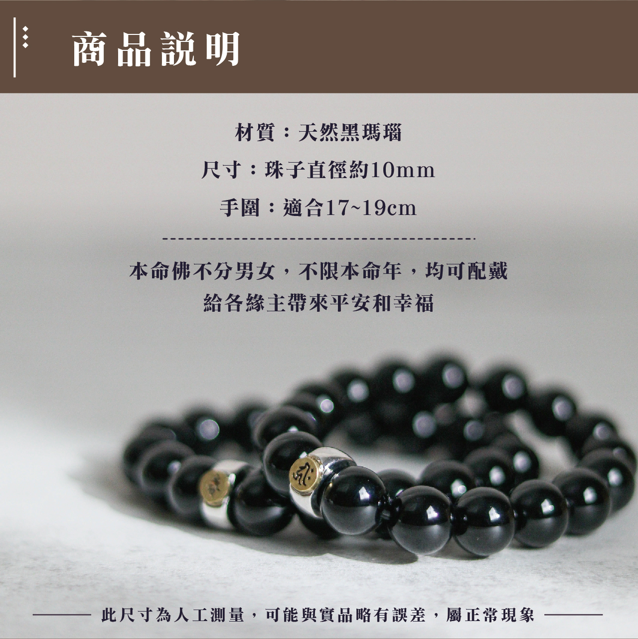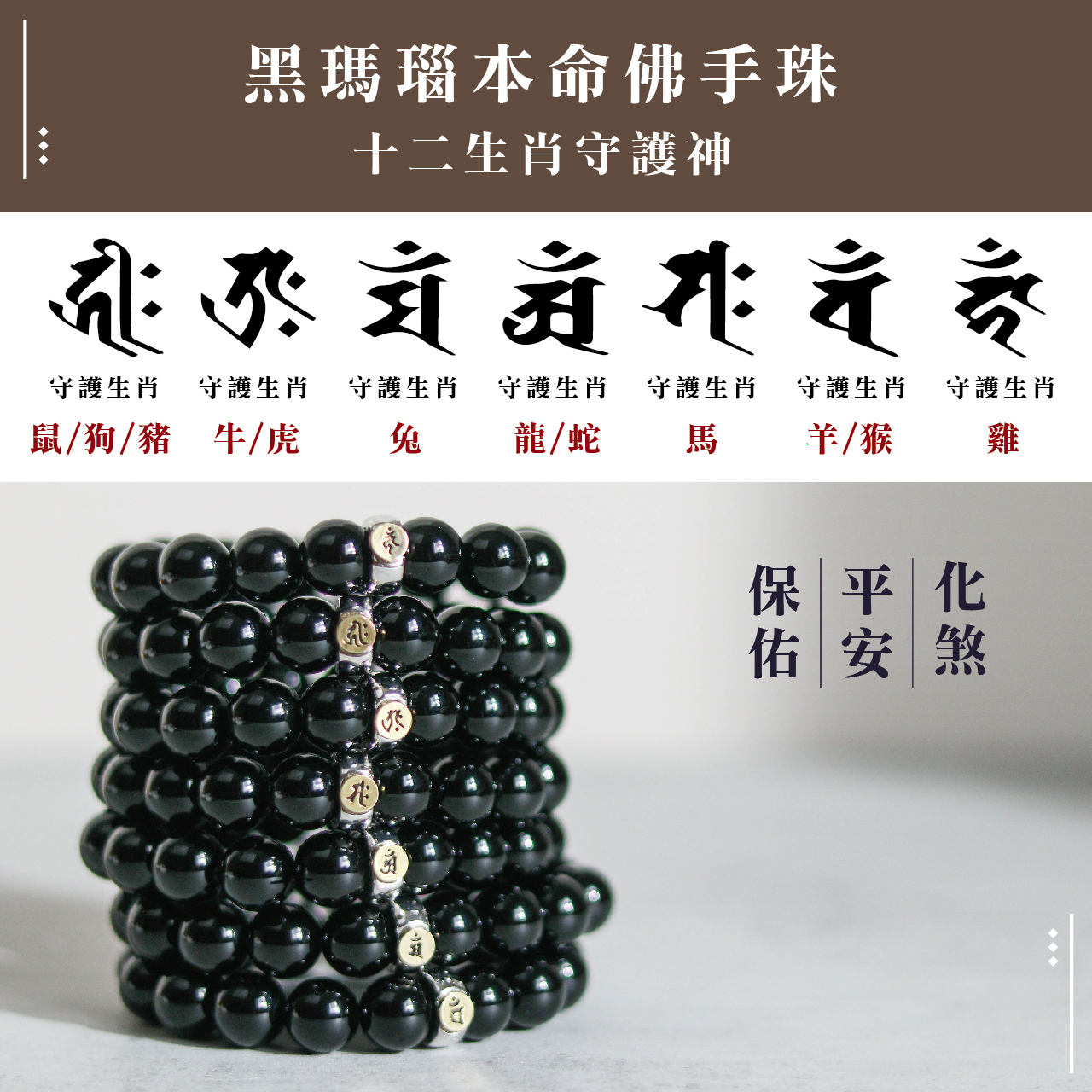天然黑瑪瑙本命佛手珠-牛/虎|守護神|虛空藏菩薩|手鍊|飾品|智慧【聚寶閣】