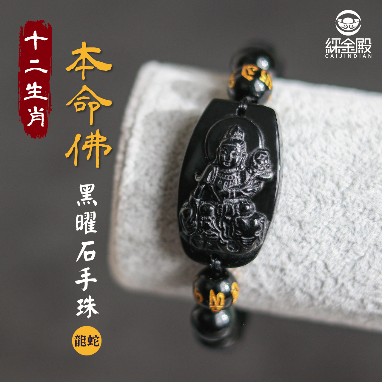 生肖龍/蛇、本命佛(普賢菩薩)黑曜石手珠|掃除小人|實現願望|手鍊|過爐加持【綵金殿】
