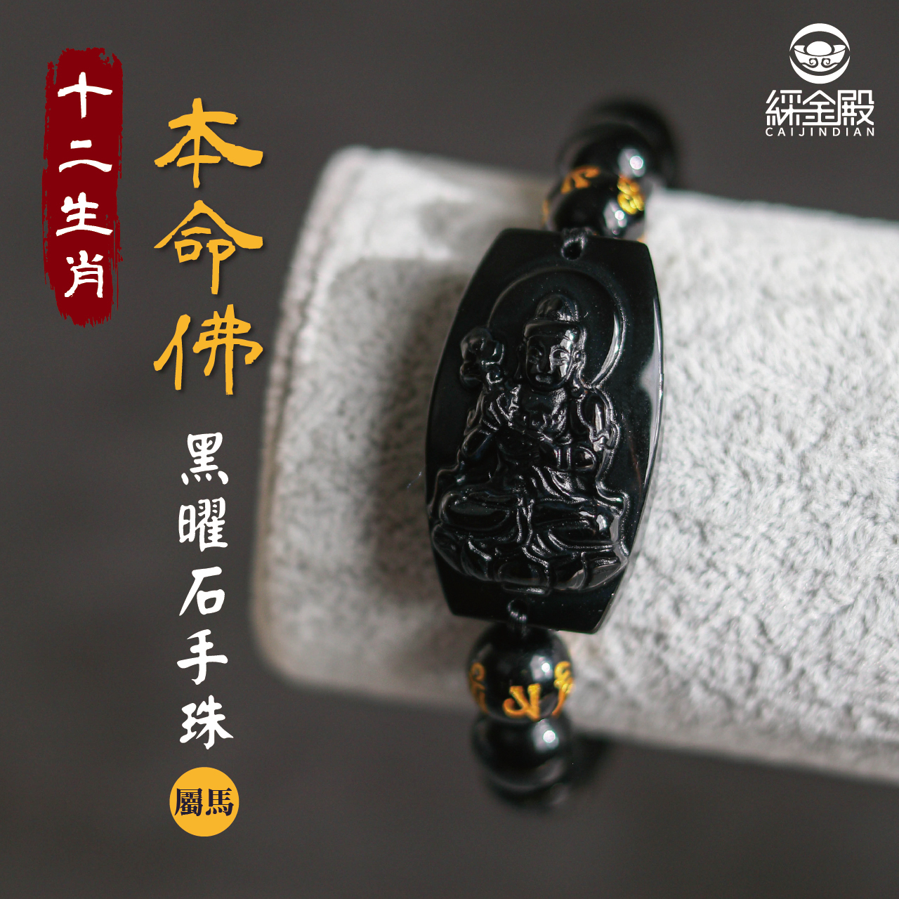 生肖馬、本命佛(大勢至菩薩)黑曜石手珠|化煞化兇|順利一生|手鍊|過爐加持【綵金殿】