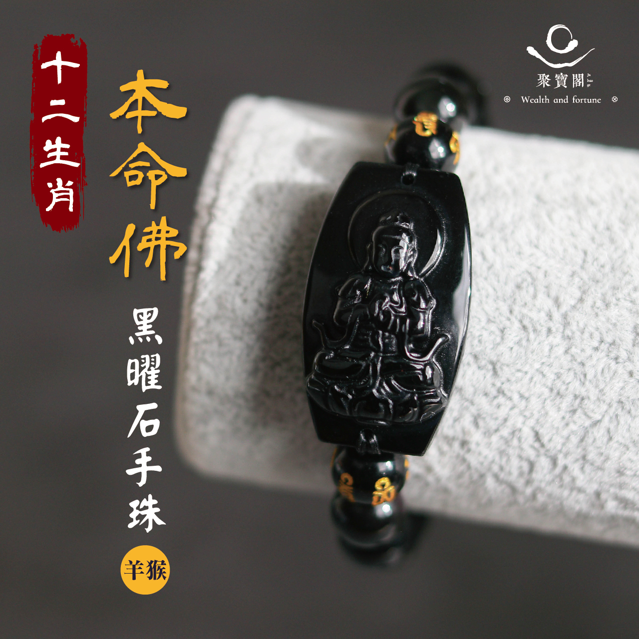 生肖羊/猴、本命佛(大日如來)黑曜石手珠|勇往直前|光明快樂|手鍊|過爐加持【聚寶閣】