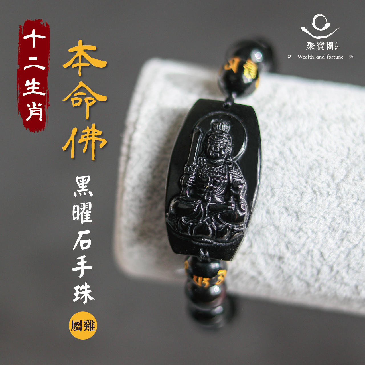 生肖雞、本命佛(不動明王)黑曜石手珠|事業有成|家庭幸福|手鍊|過爐加持【聚寶閣】