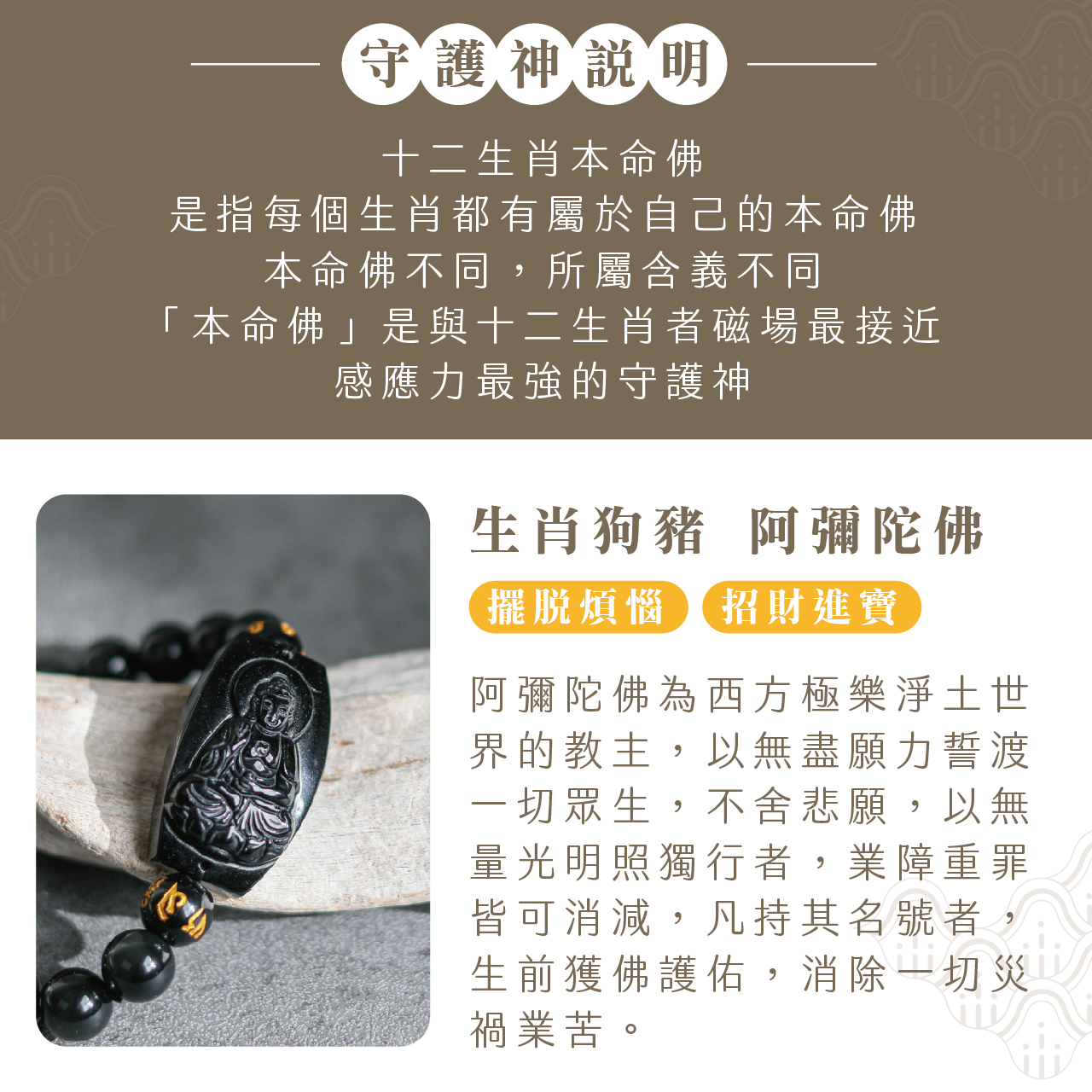 生肖狗/豬、本命佛(阿彌陀佛)黑曜石手珠|擺脫煩惱|招財進寶|手鍊|過爐加持【聚寶閣】