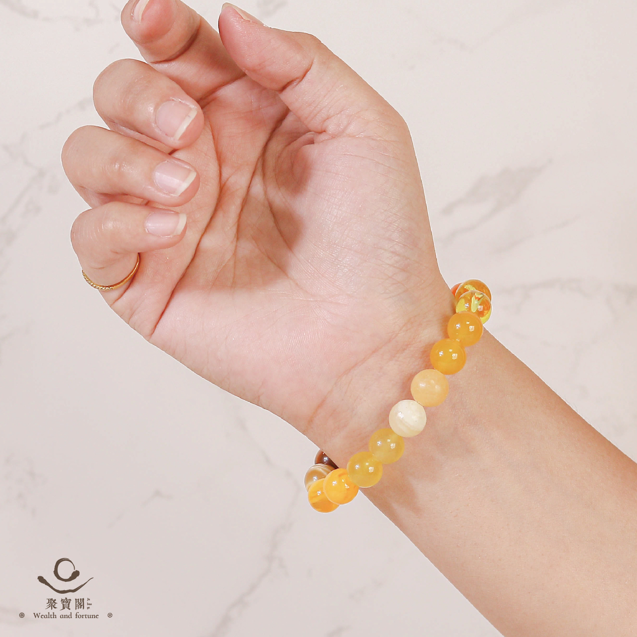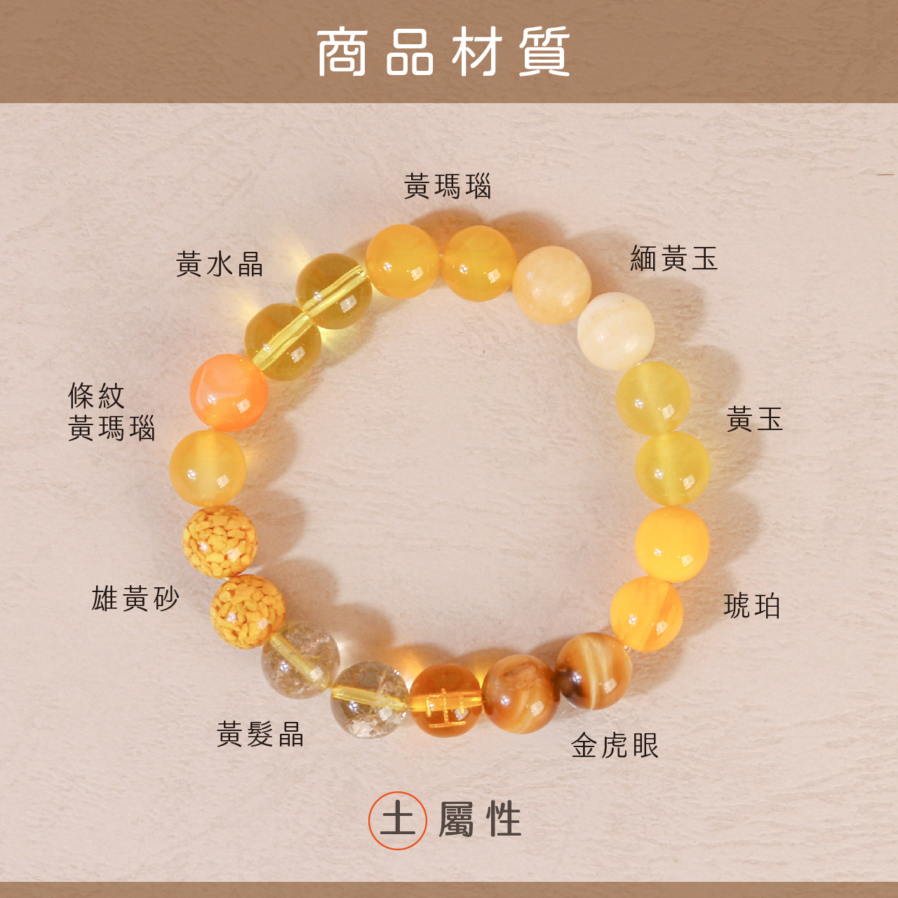 土屬性-天然瑪瑙五行轉運手珠|黃色|招財納運|舒緩身心|避邪|手鍊|手繩【聚寶閣】