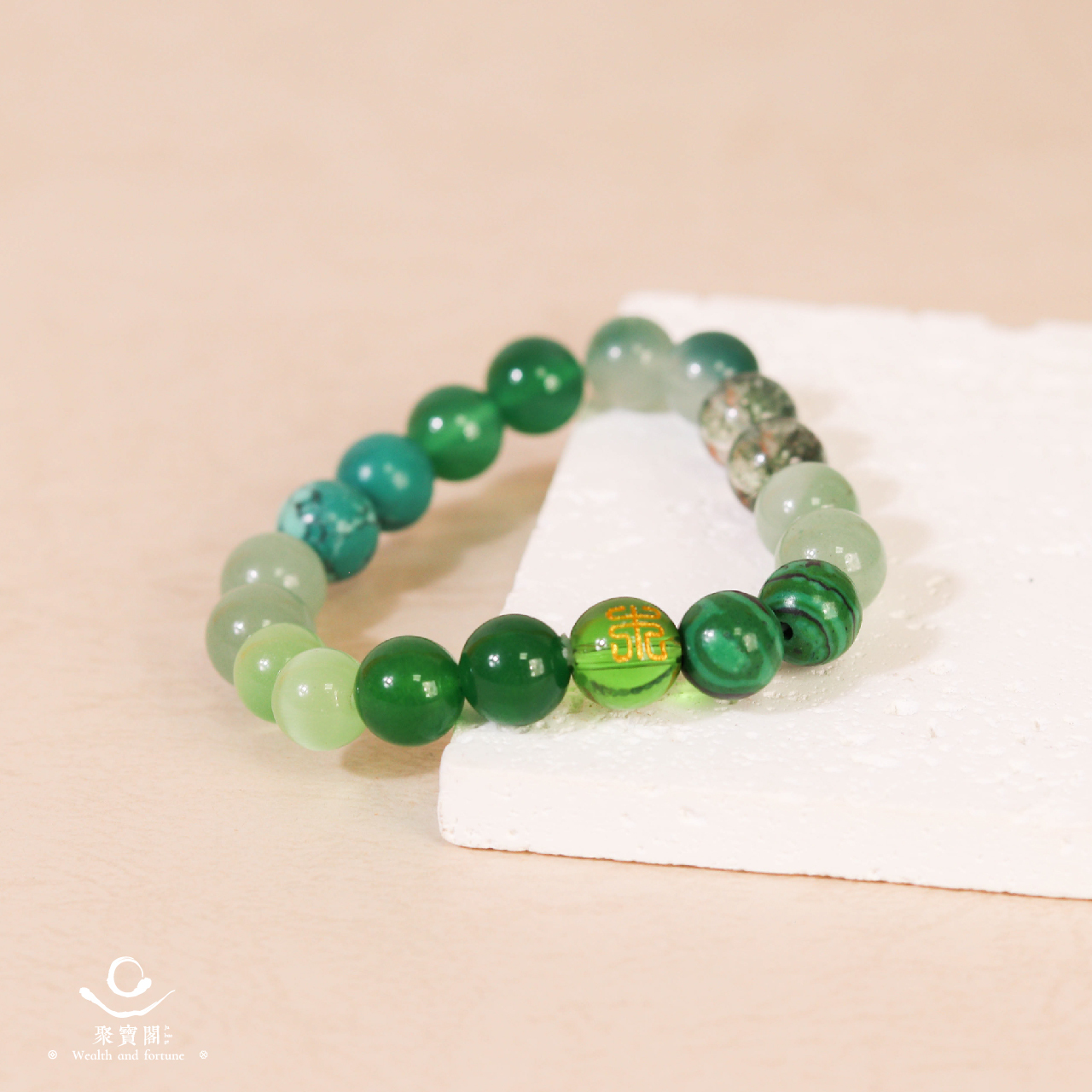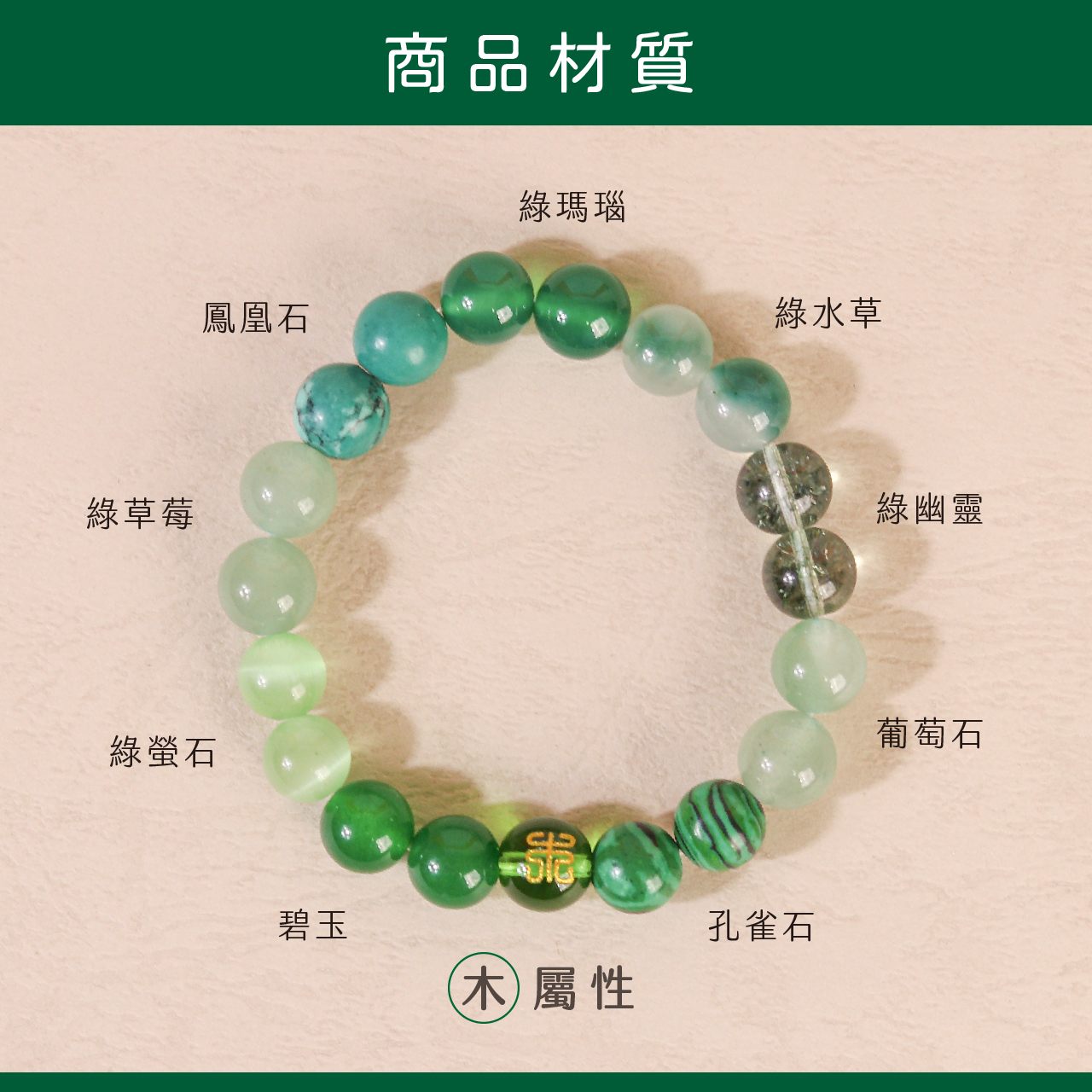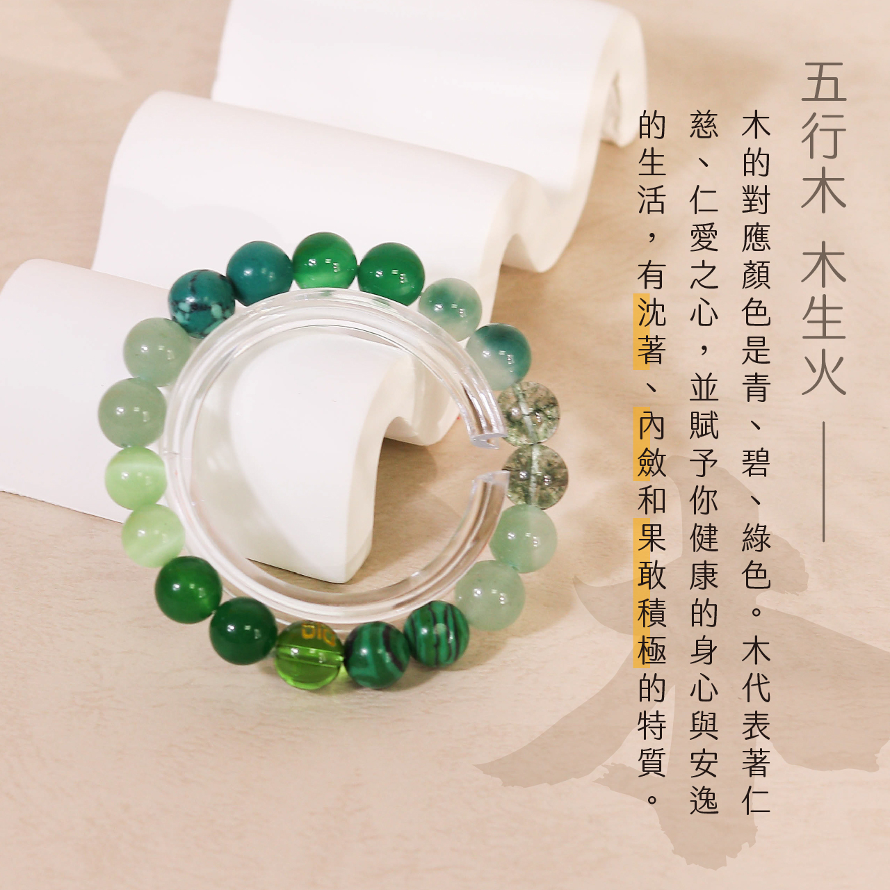 木屬性-天然瑪瑙五行轉運手珠|綠色|貴人相助|事業運|招正財|手鍊|手繩【聚寶閣】