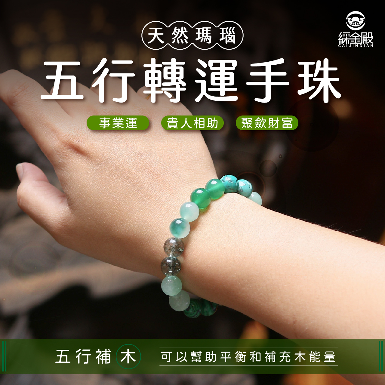 木屬性-天然瑪瑙五行轉運手珠|綠色|貴人相助|事業運|招正財|手鍊|手繩【綵金殿】