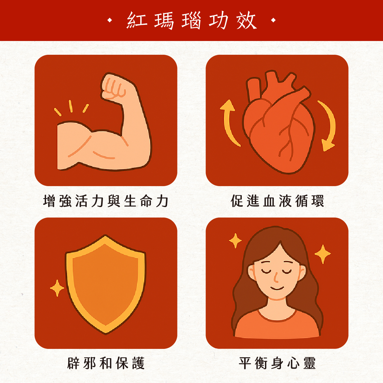 包括增強活力與生命力,穩定情緒,激發勇氣與自信,促進血液循環