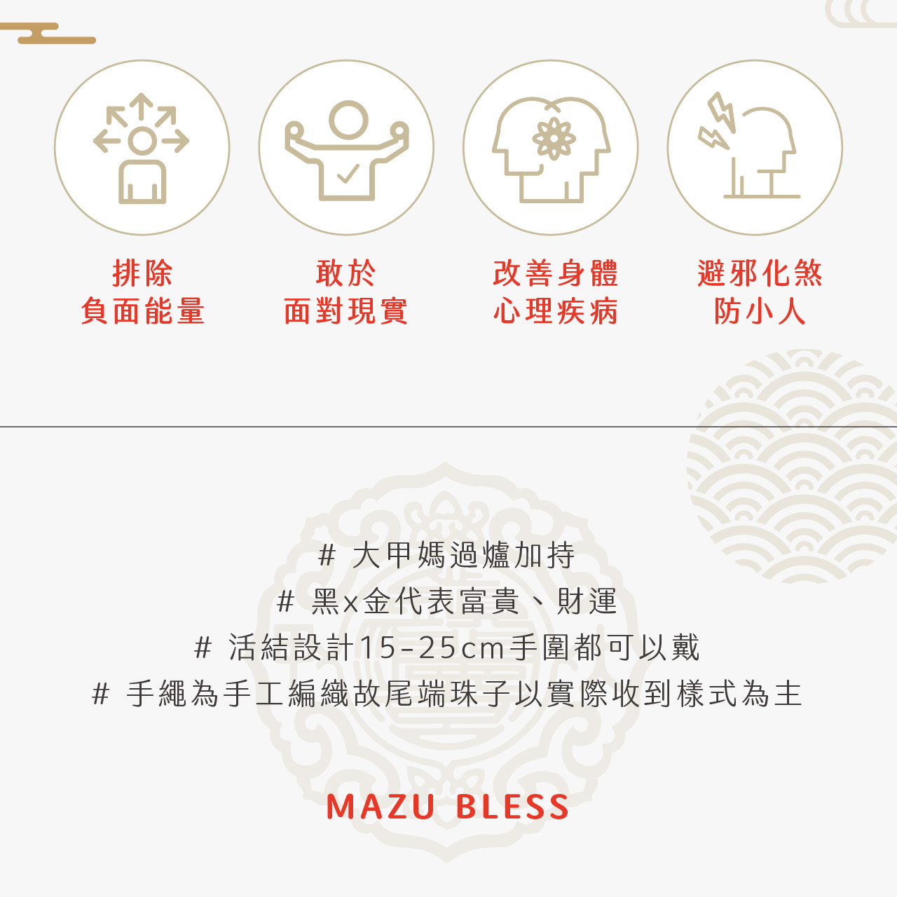 大甲媽過爐加持,大甲媽黑曜石宮徽金剛五色線